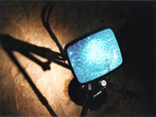 ...einem mit Wasser gefülltem Lautsprecher wird ein Audiosignal zugeleitet, das in der Wasseroberfläche wechselnde Stukturen erzeugt. Diese werden von einer Miniaturkamera aufgezeichnet und auf einer Bildröhre wiedergegeben. Die Lichtemission der Röhre wird von einem Lichtspannungswandler in ein elektronisches Signal transformiert. Dieses Signal wird über einen Audioverstärker dem Lautsprecher zugeleitet... Cymatic Circuit ist ein geschlossenes System unterschiedlicher